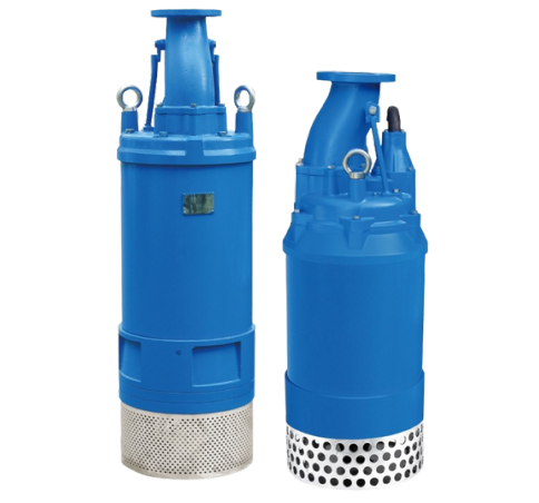 The pump is designed for safe operation, even when partially immersed, with a top outlet for